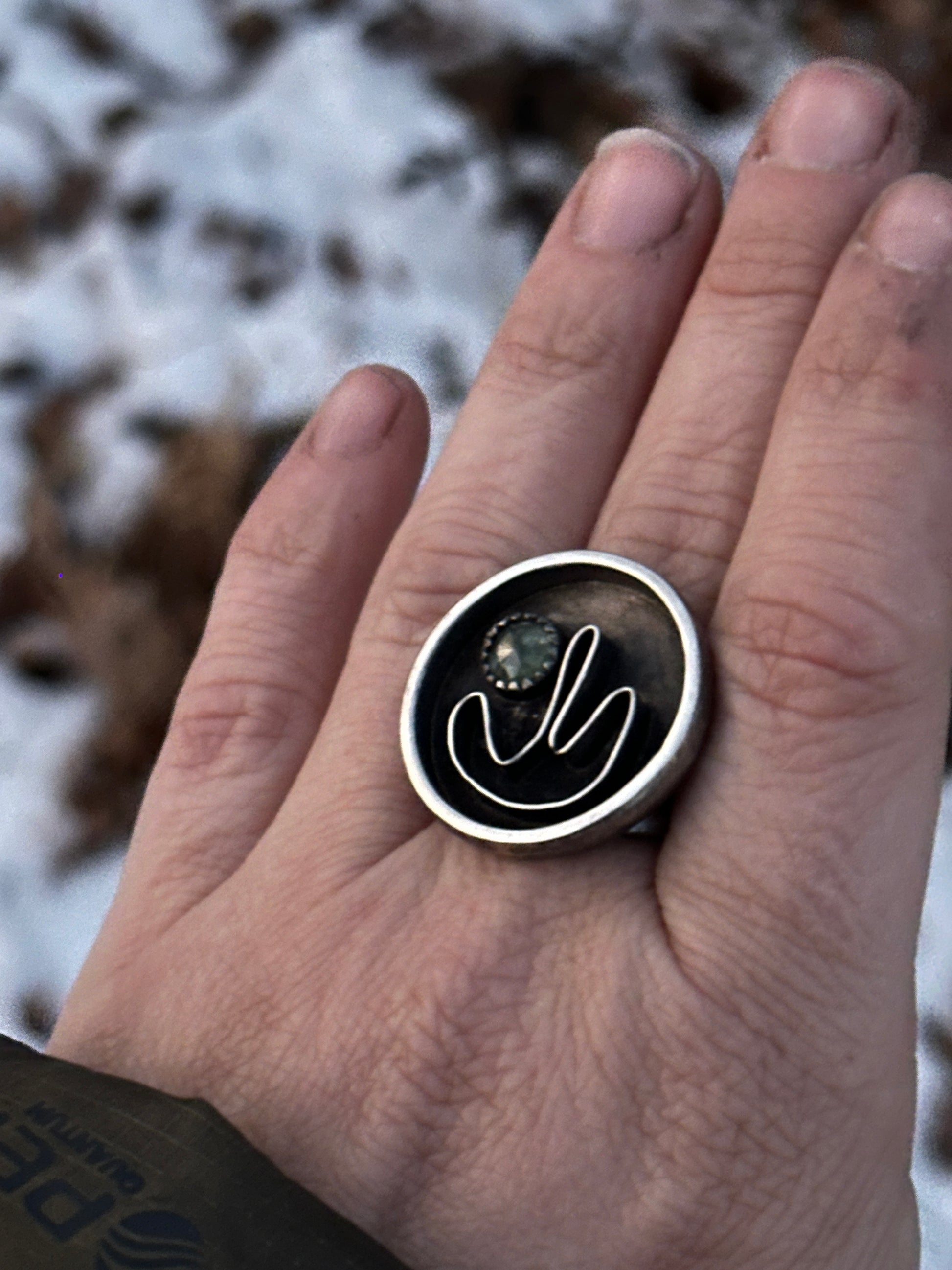 While distracting myself at the bench, I realized I had miss-measured a bezel for a stone. I began manipulating it, absentmindedly turning it into a bit of a wave. I then saw it interacting with a stone and then a frame began appearing, creating a landscape of perpetual movement and flow. I believe this is where artists and makers come back to themselves- in this moment of tinkering and freeform play with their craft. There is no pressure, no expectations, just experimentation and joy.